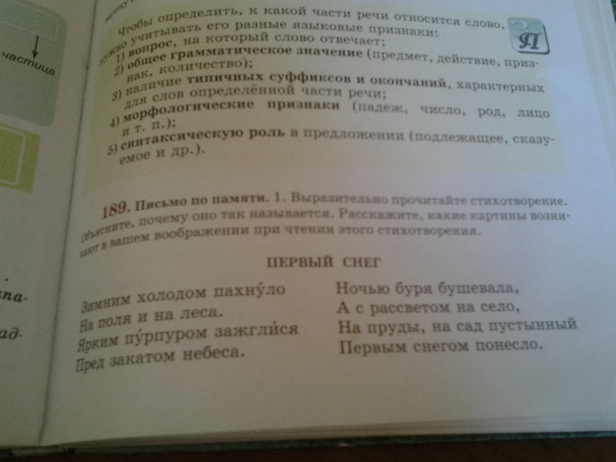 Зимним холодом пахнуло на поля и леса. Ярким пурпором зажглися перел закатом небеса. Ночью буря бушевала, а с рассветом на село, На пруды, на сад пустынный первым снегом понесло. И сегодня над широкой белой скатертью полей мы простились с запоздалой вереницею гусец. Задание: Определите какой частью речи является каждое слово. Какие части речи в этом тексте не представлены? ПОМОГИТЕ ПОЖАЛУЙСТА!!!!!!! НА ФОТО НЕ ОБРАЩАЙТЕ ВНИМАНИЯ!!! Самый первый ответ лучший. Заранее спасибо!