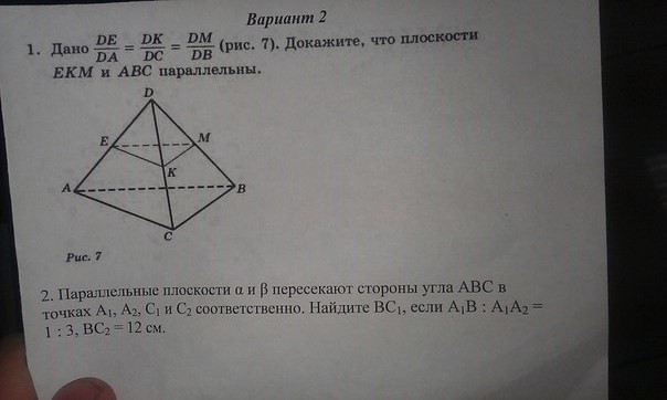 2. Так как у подобных треугольников углы равны. То соответственно угол EKD= ACK, угол KDM=CBM. Соответственно прямые AC || EK , KM||CB.