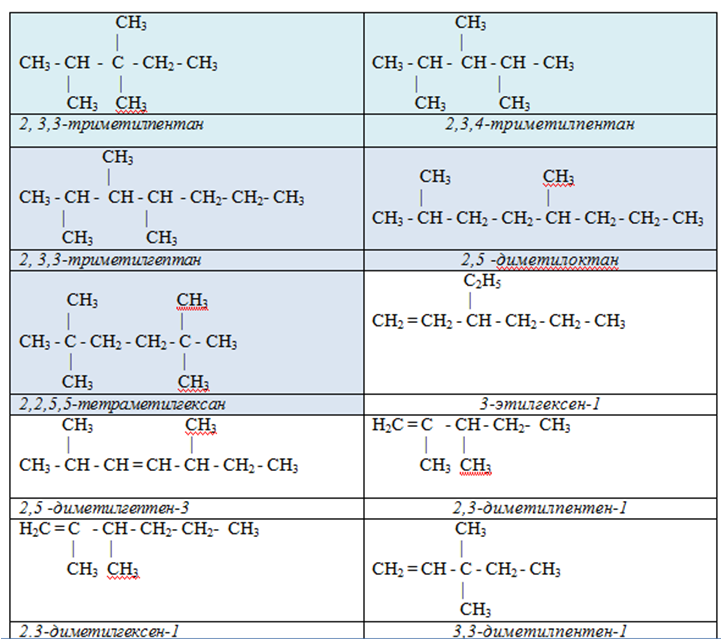 Составить 5 различных алканов 5 алкенов 5 алкинов, все должны быть разветлённого строения и всем дать название.