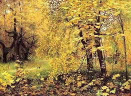 И. С. Остроухов любил наблюдать за изменениями в природе. На его полотне изображен тот момент, когда королева Осень одевается в простонародное разноцветное платье. Лето ушло, на улице пока тепло, а деревья немного вздыхают о своих зеленых нарядах.. Они все - в золоте. Слева внимательный зритель видит тропинку, по которой , наверное, бегут - спешат любопытные туристы или просто любители потоптать осеннюю листву. На ней пристроились сударушки - сороки. Рядом - кривое дерево, похожее на дежурного по сентябрю. День не солнечный, но украшением его являются яркие листья, которые с любовью нарисовал художник. Они имеют разную длину и оттенки цветов. Очень хочется приходить в лес, нарисованный Остроуховым, снова и снова, дышать воздухом осени и взирать на ее красоту.