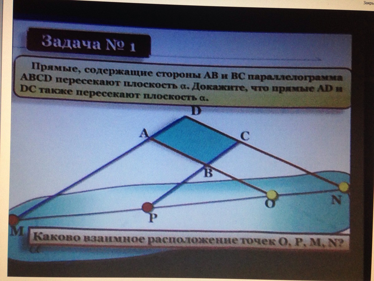По лемме п. 5 CD пересечет α, т.к. CD || AB, а АВ пересекает α. По лемме п. 5 AD пересечет α, т.к. AD || BC, а ВС пересекает α.