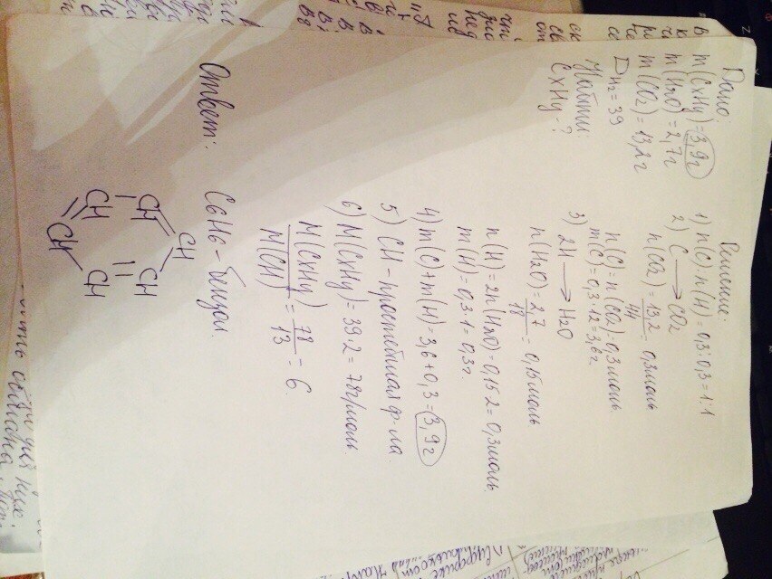 при сжигании 3,9 г органического вещества плотность паров которого по водороду равна 39 образовалось 2,7 г воды и 13,2 г углекислого газа определите структурную формулу этого соединения