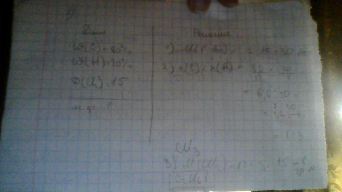задача. выведите молекулярную формулу органического вещества, если известно, что массовая доля углерода в нем 80% а водорода -20 % D (H2)=15