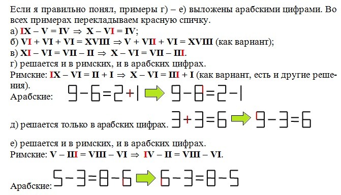 Из спичек сложены верны равенства.Надо в каждом из равенств переложить одну спичку так, чтобы получились другие верные равенства.
