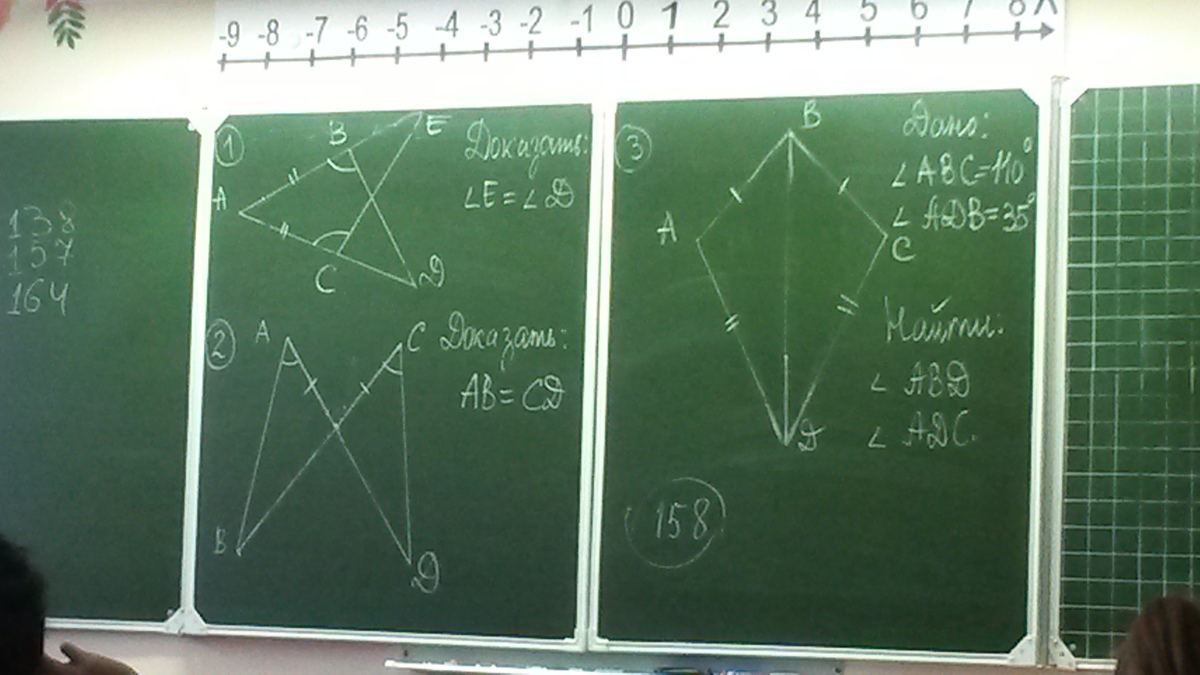1) тр АЕС = тр АВД (по стороне АС=АВ и двум прилежащим к ней углам уг А - общий, уг В=уг С), след уг Е=уг Д