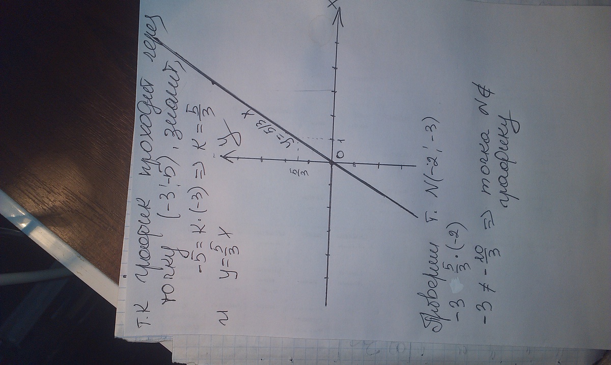 Постройте график y=kx, если он проходит через точку Р(-3;-5). Проходит ли этот график через точку N(-2;-3)
