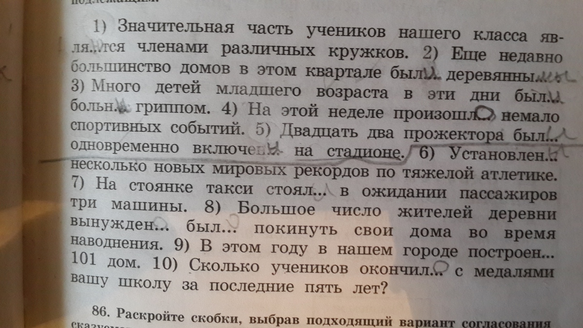 5)Подлежащее - двадцать два(числ) прожектора(сущ), составное сказуемое - были включены