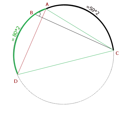 от окружности осталась дуга CD = 360-260 = 100 градусов...