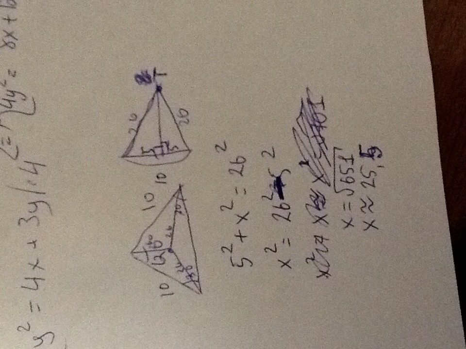 В равнобедренном треугольнику угол при вершине равен 120°, а боковые стороны-по 10 см. Вне плоскости треугольника дана точка, удаленная от всех его вершин на 26 см. Определите расстояние от этой точки до плоскости треугольника.