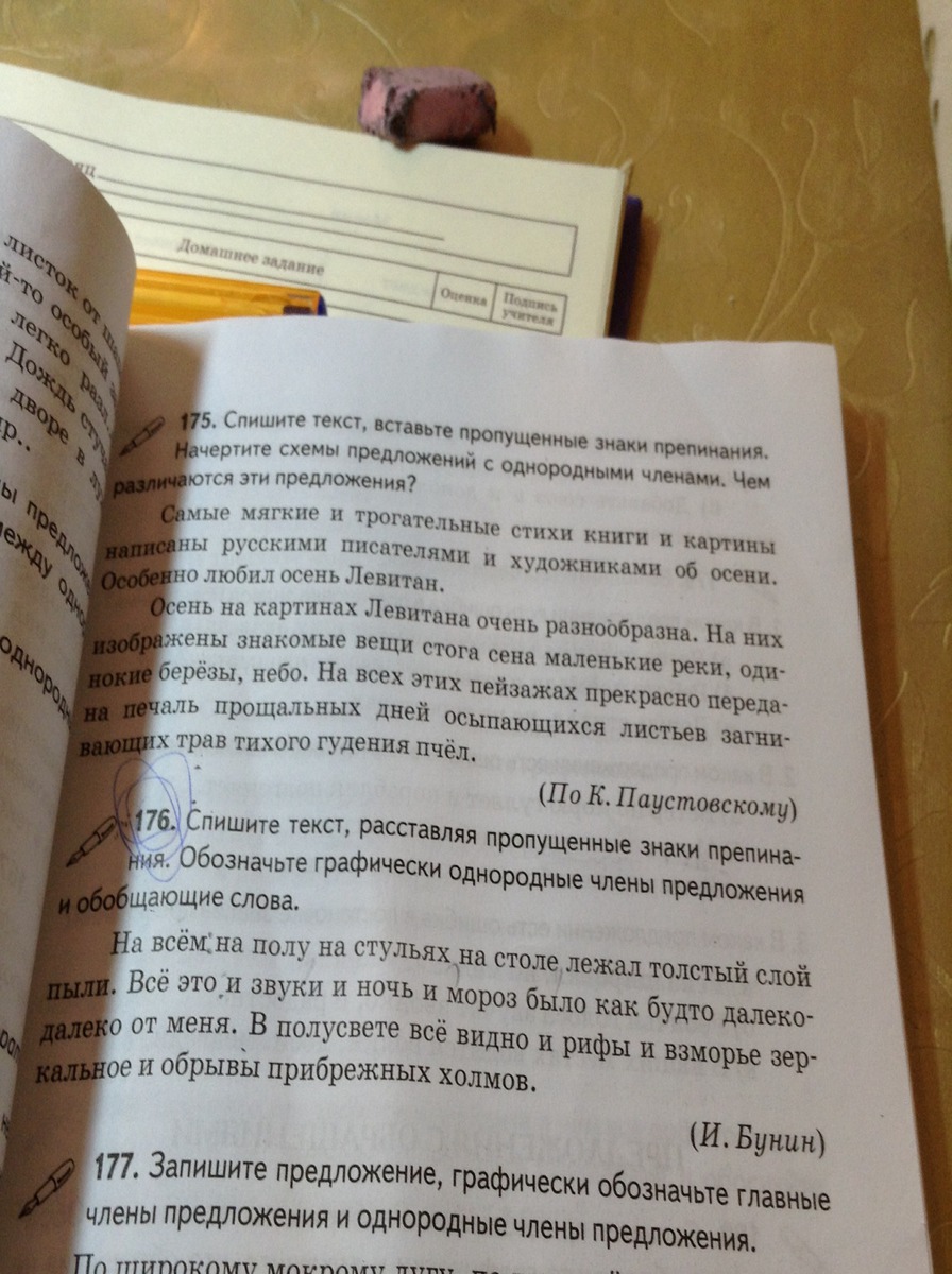 На всём: на полу, на стульях, на столе лежал толстый слой пыли.Всё это: и звуки, и ночь, и мороз было как будто далеко-далеко от меня. В полусвете всё видно: и рифмы, и взморье зеркальное, и обрывы прибрежных холмов.: