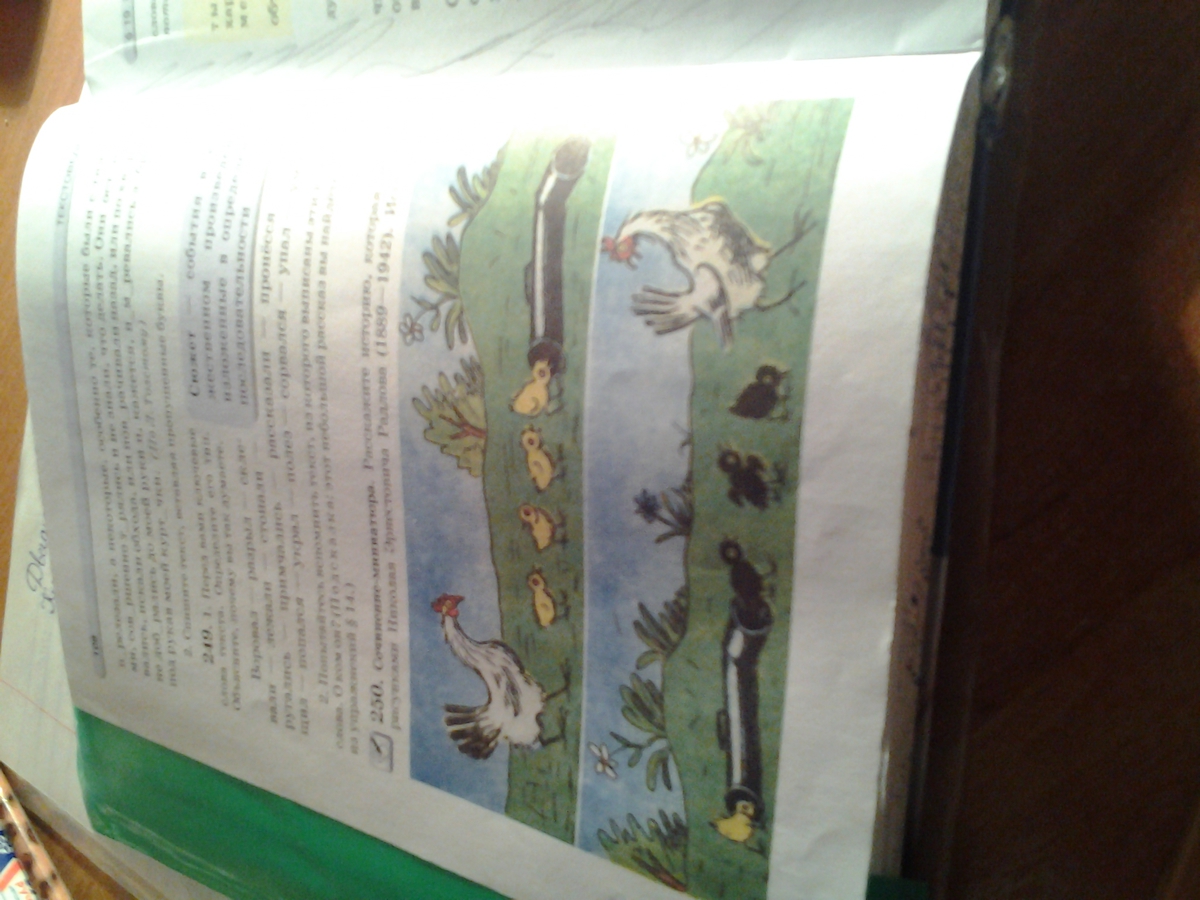 Мама-курица ведёт к озеру своих деток-цыплят.Медленно идут они, весело кукарекая.Шли они, как вдруг видят цыплята трубу, а цыплята-то любопытные!А мама-курица идёт, да посматривает, чтобы никто не отставал.Оборачивается, и вдруг видит:все цыплята чёрные!