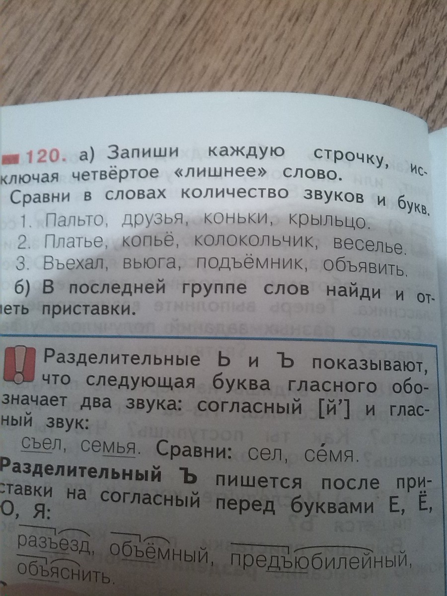 пальто-4 звука 6 букв друзья-4 звука 6 букв коньки-4 звука 6 букв платье- 4 звука 6 букв копьё-3 звука 5 букв колокольчик 6 звуков 11 букв въехал- 2 звука 6 букв вьюга-5 звука 5 букв подъёмник-4 звука 9 букв.