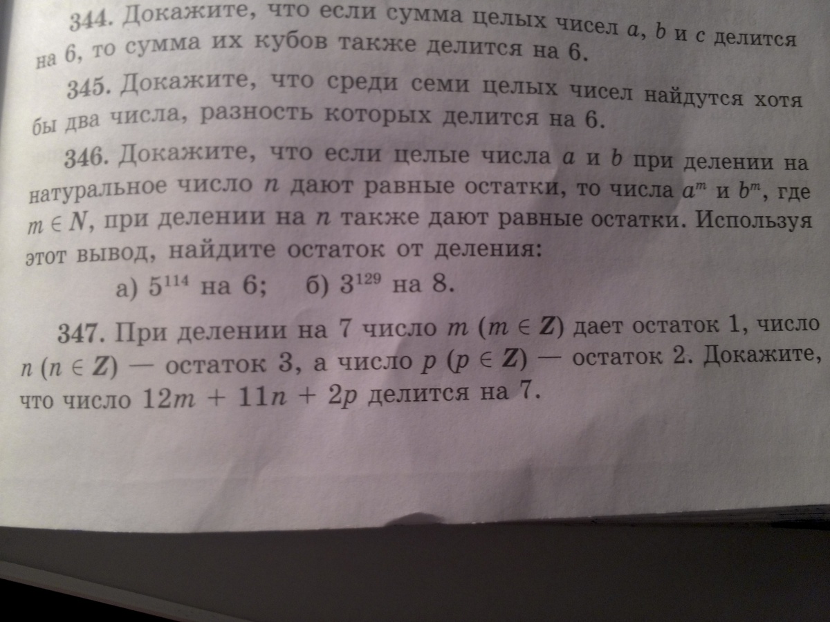 Докажите, что если целые числа a и b пи делении на натурально число n дают равные остатки, то числа a^m и b^m, где m принадлежит N, при делении на n также дают равные остатки. Используя этот вывод, найдите остаток деления: а) 5^114 на 6 б)3^129 на 8