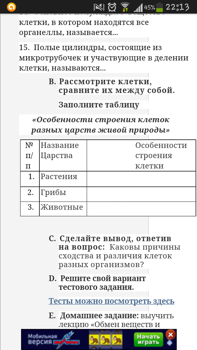 помогите заполнить таблицу! пожалуйста,надо срочно,только там еще нужно написать про бактерии