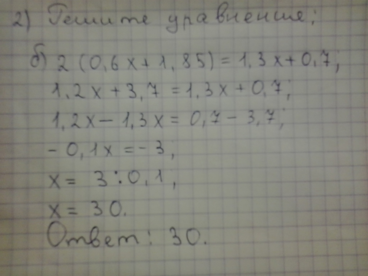 а) - ⅜ х = 24 б) 2(0,6х + 1,85) = 1,3х + 0,7