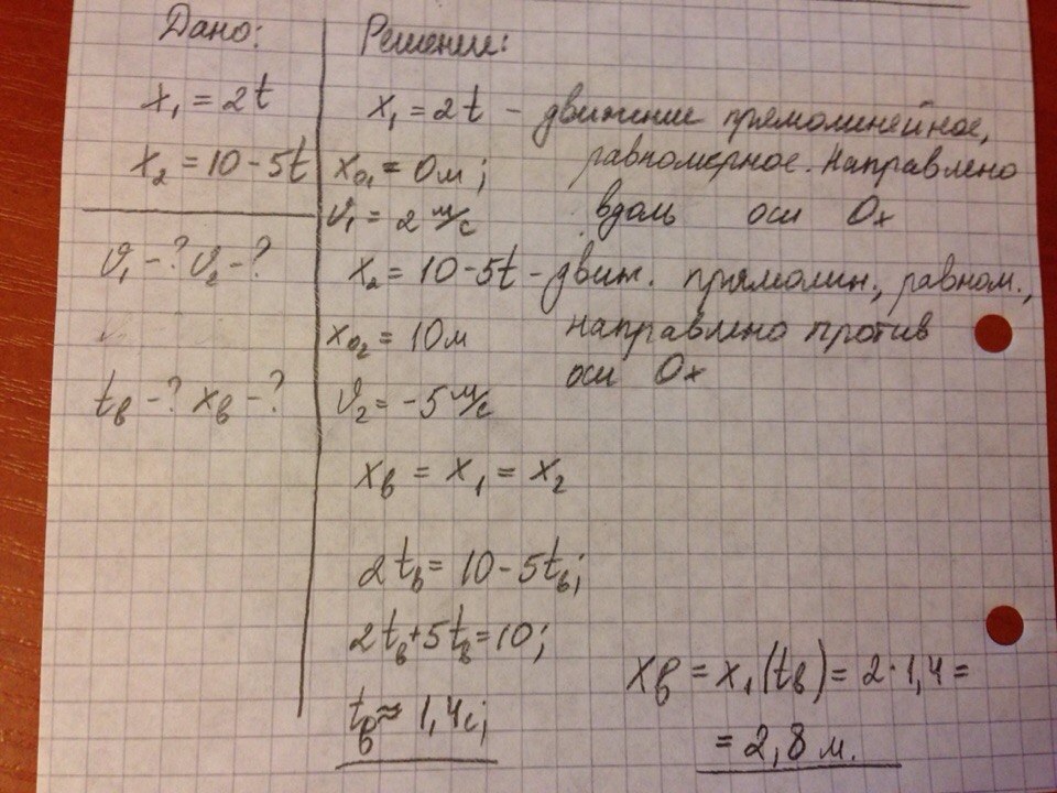 Опишите характер движения каждого тела, найдите модуль и направление их скоростей, постройте график движения, графики скорости и определите графически и аналетически время и место встречи этих тел.