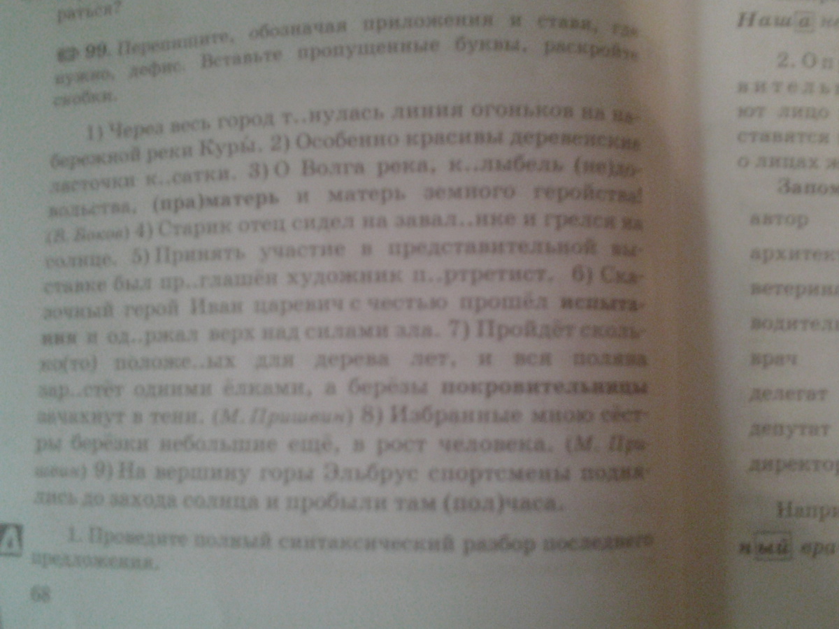 1-тянулась,...огоньков 2-ласточки-касатки 3-колыбель, недовольства праматерь 4-завалины,и 5-выставке,...приглашен художник-портретист 6-испытание,....одержал 7-сколько-то....положенных,зарастет 8-сестры-березки 9-Эльбрус,...солнца,....... полчаса
