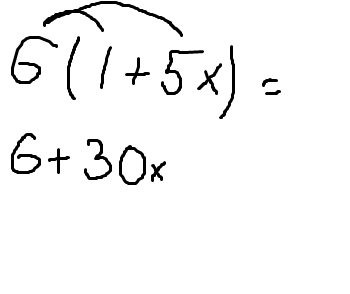 Умножаем 6 на 1, потом на 5х, получается 6+30х