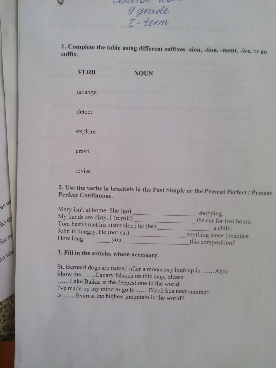 arrangement, detection, detective, exploration, crash-no suffix, revision