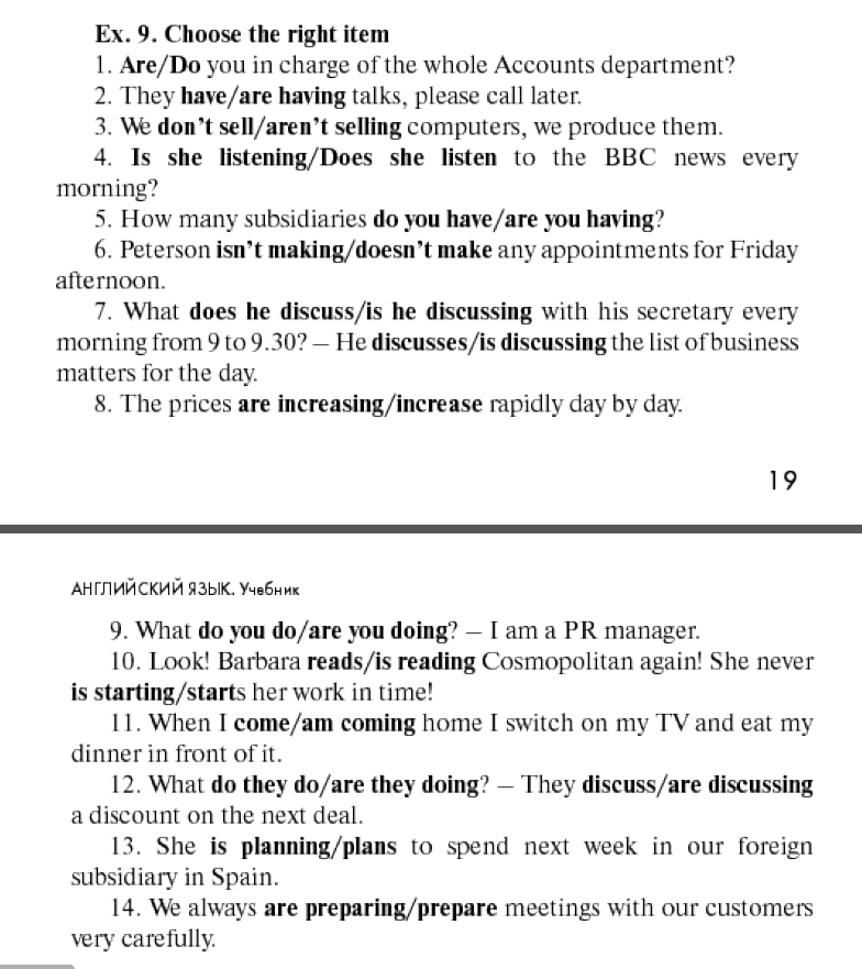 10. Look! Barbara reads/is reading Cosmopolitan again! She never is starting/starts her work in time!