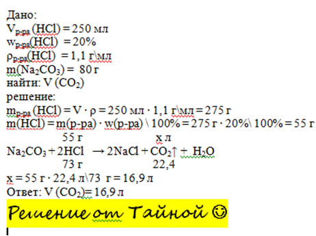 Соляная кислота: масса раствора кислоты - 250*1,1 = 275 г