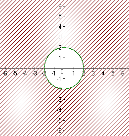 а)Окружность с центром в начале координат и радиусом 2,штриху ется область вне окружности