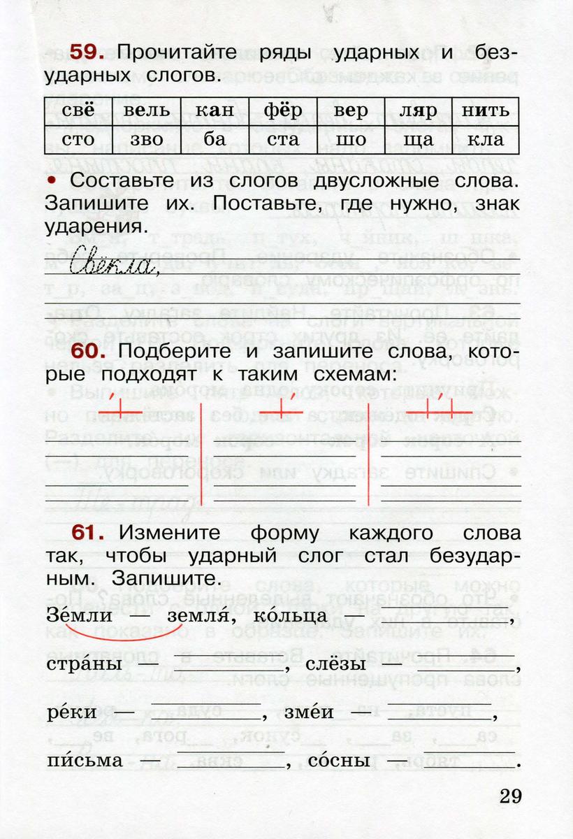 ПОДБЕРИТЕ И ЗАПИШИТЕ СЛОВА,КОТОРЫЕ ПОДХОДЯТ К ТАКИМ СХЕМАМ(рабочая тетрадь стр29 упр.60 В.П.Канакина)