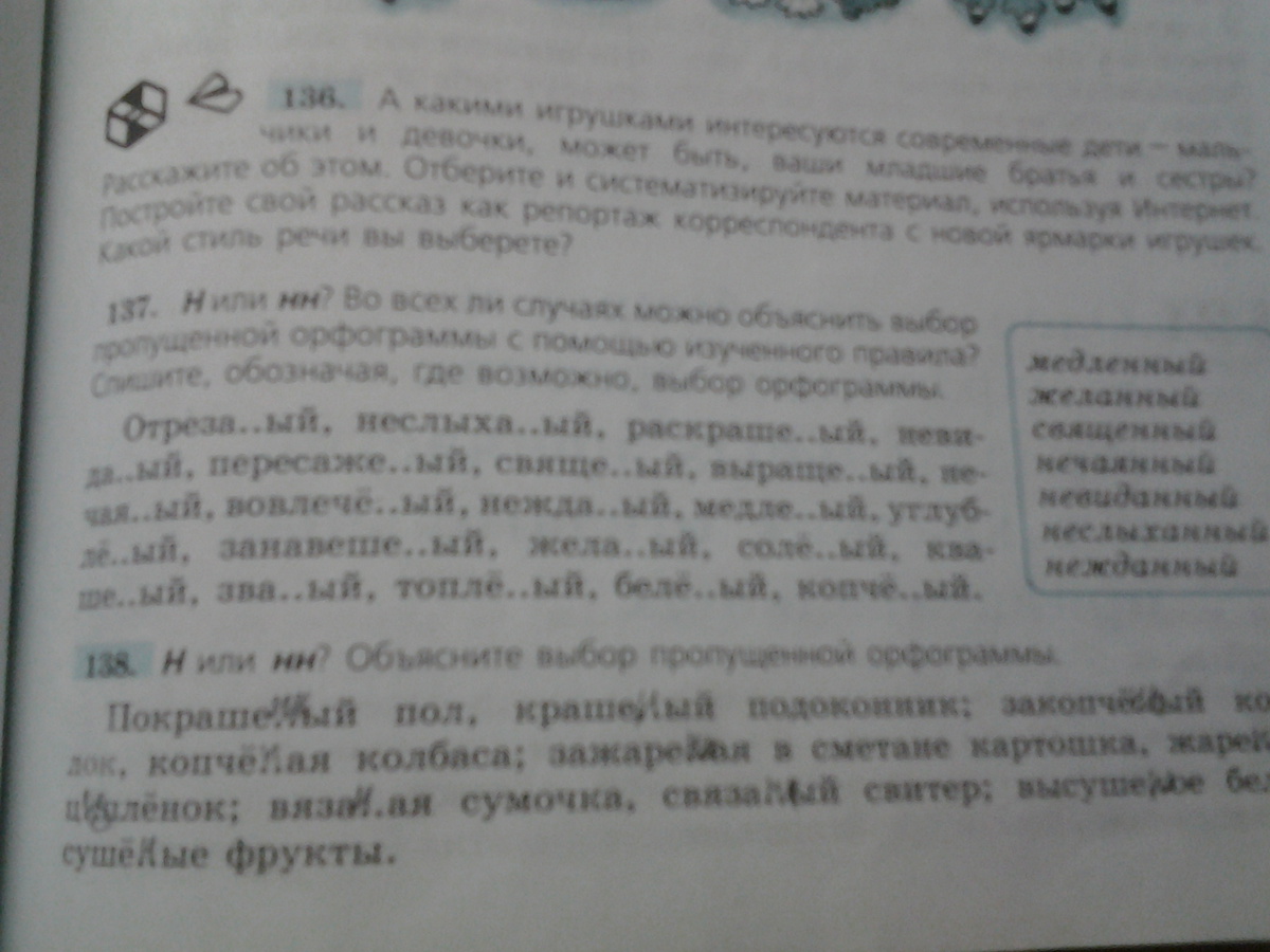 Отрезанный, неслыханный, раскрашенный, невиданный, пересаженный, священный, выращенный, нечаянный, вовлеченный, нежданный, медленный, углубленный, занавешенный, желанный, соленый, квашеный, званый, топленый, беленый, копченый.
