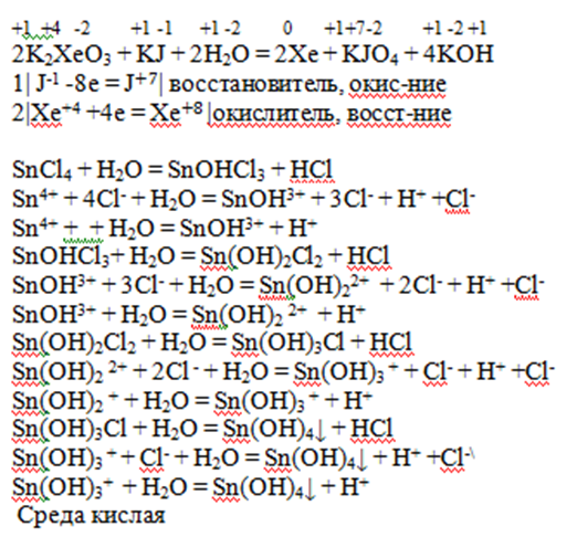 1. Напишите уравнение реакции гидролиза SnCl4 и укажите среду раствора