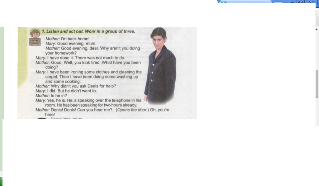 Мэри:я гладила вещи и чистила ковер. Затем я помыла немного посуды и немного готовила.