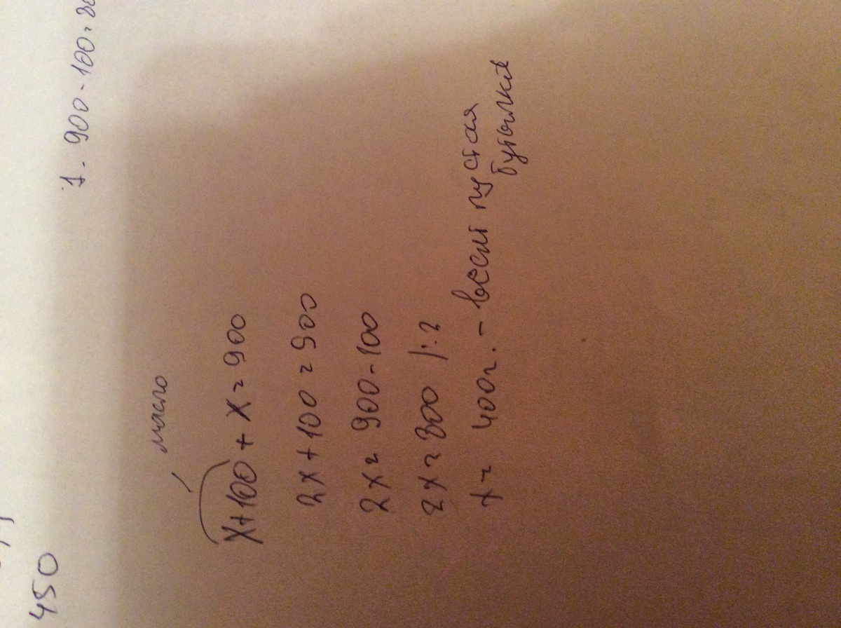 Помогите решить задачу пожалуйста : Бутылка масла весит 900 г. Масло на 100 г тяжелее бутылки. Сколько весит пустая бутылка?