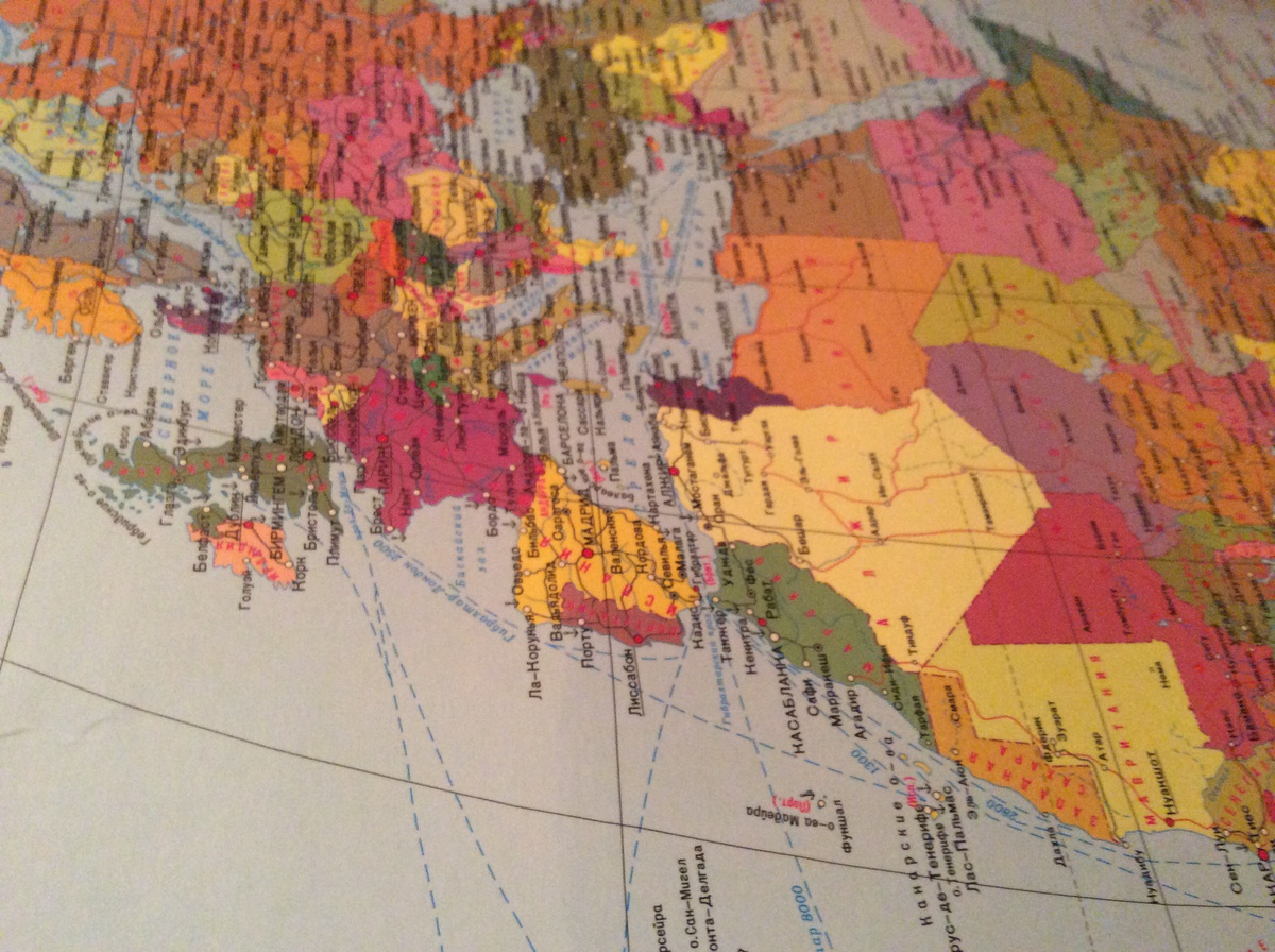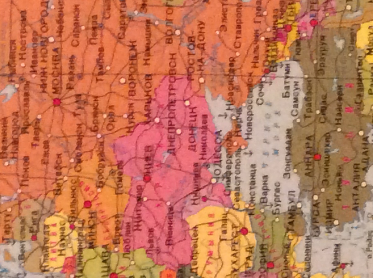 Украина на карте розовым цветом. А экватор - горизонтальная линия. Украина Экватор не пересекает. Находится севернее