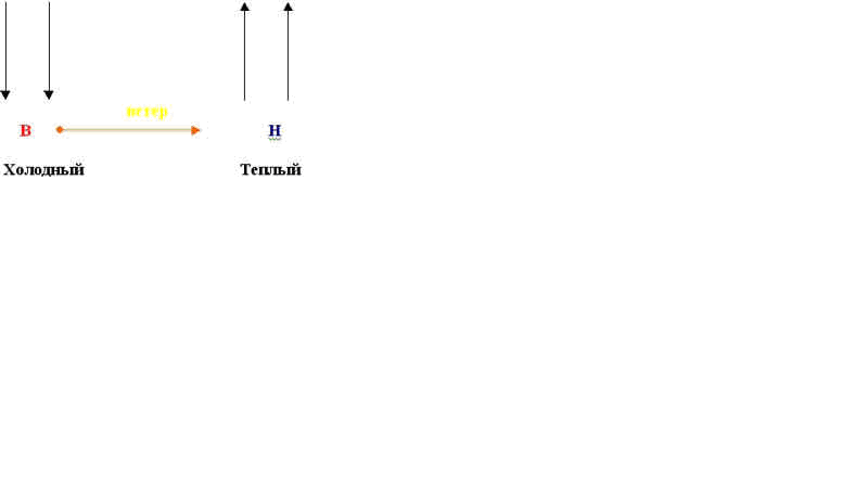 Чтобы легче было работать высокое давление обозначим В, а низкое – Н. Итак, мы видим, что ветер – это движение воздуха в горизонтальном направлении. Главная причина возникновения ветра – разница в атмосферном давлении. Ветер всегда дует из области высокого давления в область низкого давления. В прикрепленном файле схема ветра