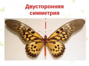 Если ты имеешь в виду строение животных, то, это выражается в том, что органы располагаются правильно справа и слева относительно срединной плоскости, делящей животное на правую и левую половину; а вообще двухсторонняя симметрия , это когда 1 часть похожа на другую( например, если человека разделить вертикально на 2 части, эти части будут похожи)