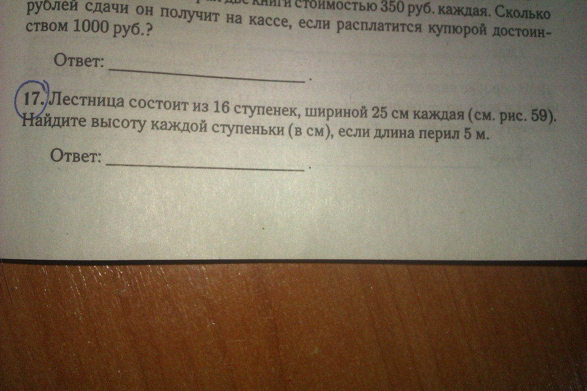 2) 500:16=31.25(см) высота 1 ступеньки.