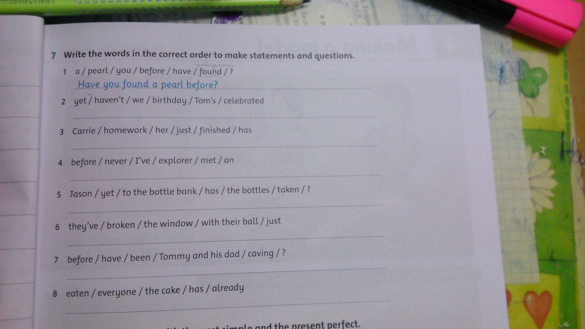 write the world in the correct order to make statements and questions.