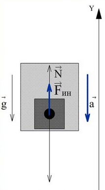 б) рисунок для 3 условия, когда лифт движется вниз с ускорением