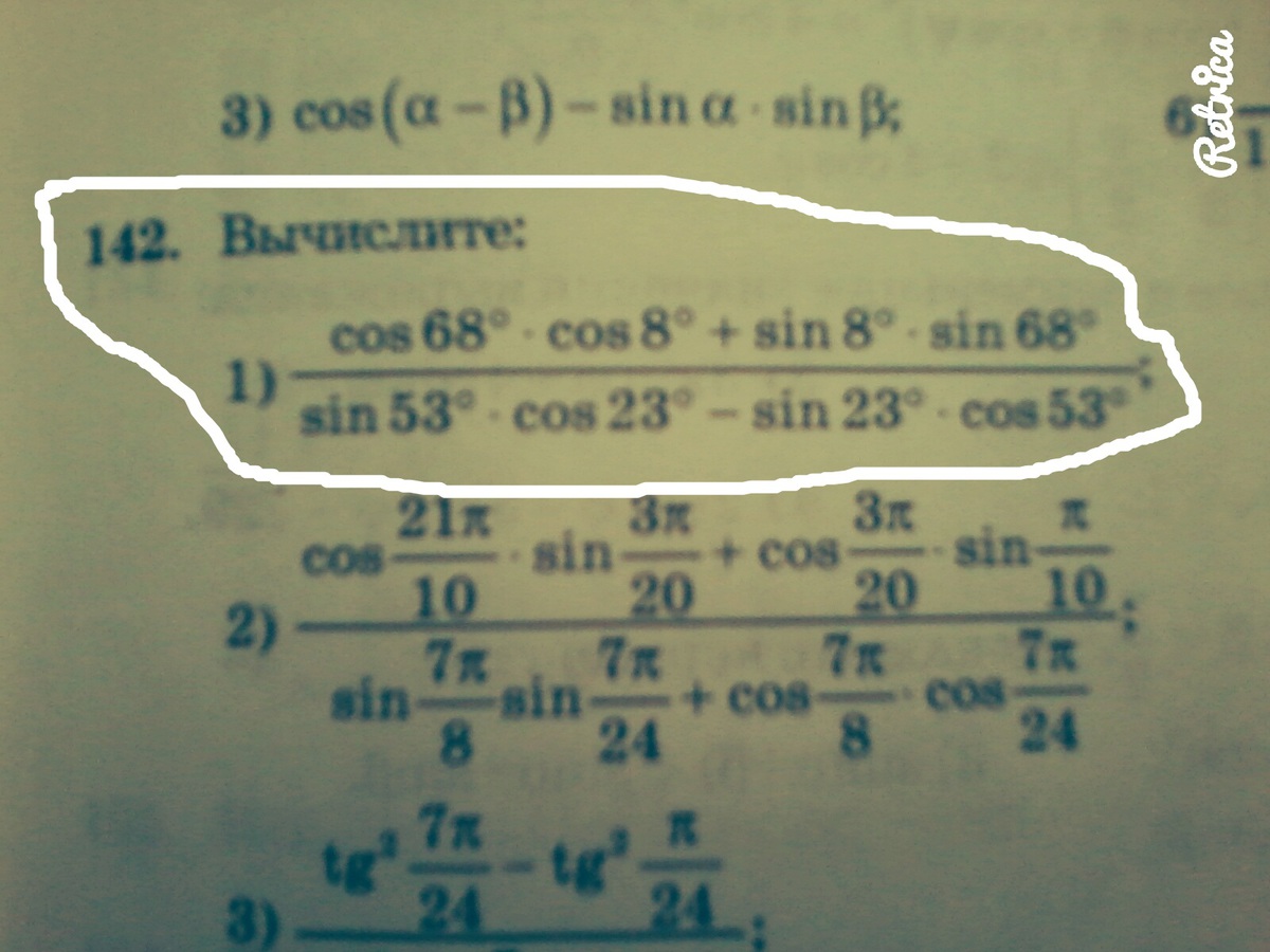 cos68*cos8+sin8*sin68/sin53*cos23-sin23*cos53=