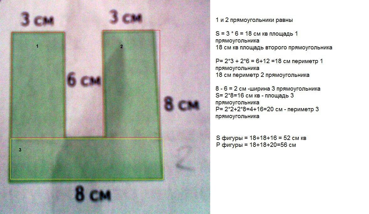 Разбей каждую фигуру на прямоугольники.найди стороны получившихся прямоугольников. Найди площадь и периметр фигуры на рисунке