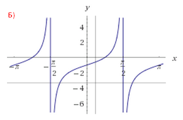 2) График тангенса опущен на 1 вниз по оси у, х любой