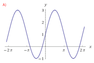 1) Синусоида поднята на 1 по оси у вверх и растянута в длину в 2 раза