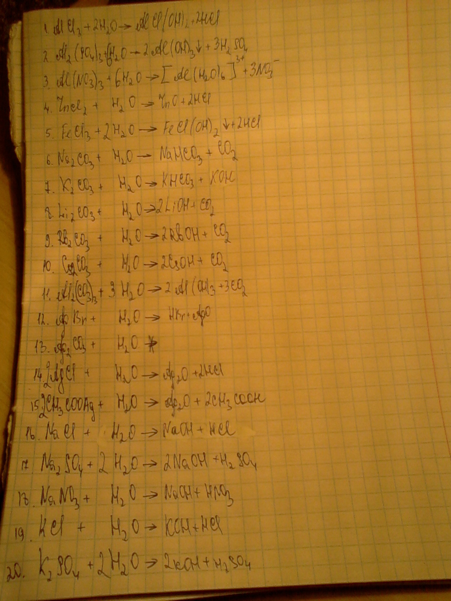 нет надо только вот по уравнению Al2(CO3)3 и надо всего лишь сделать отвести от этого уравнения стрелки подписать какое слабое вещество, а какое сильное написать 3 урав и всё