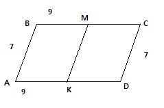 В параллелограмме ABCD на сторонах BC и AD взяты соответственно точки М и К-середины этих сторон. Определите вид четырёхугольника ABMK(ОТВЕТ ОБОСНУЙТЕ) и найдите его периметр если AB=7 см, BC=9 см.