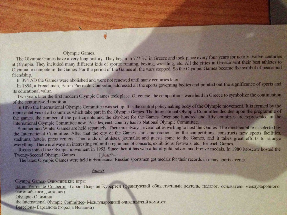 Олимпийские игры имеют долгую историю. Стартовали они в 777 году до н.э. в Греции и проходили каждые четыре года почти двадцать веков в Олимпии. В себя они включали множество различных видом спорта: бег,бокс,борьба и т.д. Для участия в играх все города Греции посылали своих лучших атлетов в Олимпию. На период проведения игр прекращались все войны. Потому Олимпийские игры стали символом мира и дружбы.