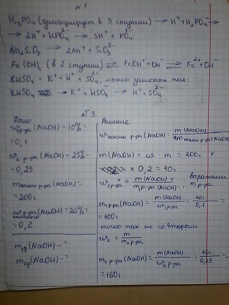 1.Даны формулы электролитов: Н3РО4, ВА(ОН)2, Na2SiO3, Fe(OH)2, KHSO3. Составьте уравнения электролитической диссоциации веществ.