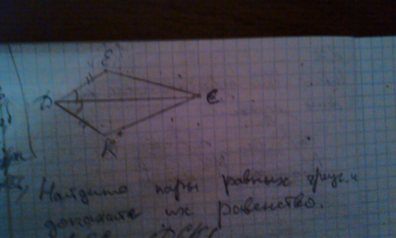 т.к. угол ЕДС= углу КДС , ДЕ=ДК, а ДС- общая сторона⇒ΔСЕД=ΔСКД(по двум сторонам и углу между ними)