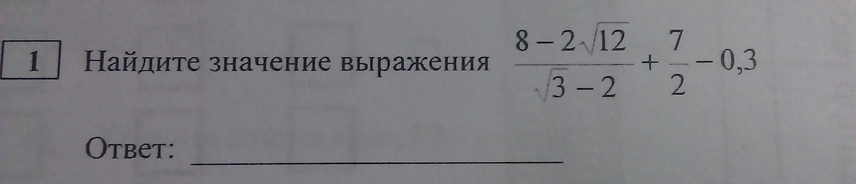frac{8-2*2 sqrt{3} }{ sqrt{3}-2} +3,5-0,3= frac{8-4 sqrt{3} }{ sqrt{3}-2} +3,5-0,3= frac{-4( sqrt{3}-2) }{ sqrt{3}-2}+3,5-0,3= \ -4 +3,5-0,3=0,8