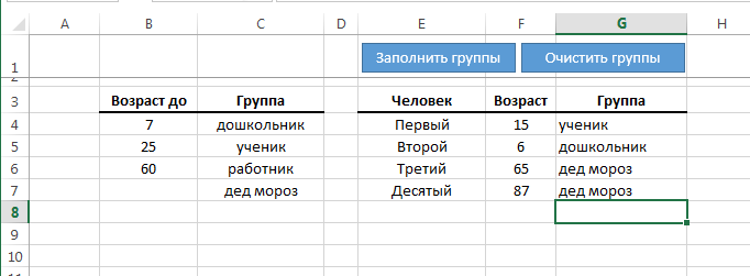 Написать на VBA Excel программу,которая анализирует данные о возрасте и относит человека к одной из четырёх групп: дошкольник, ученик, работник, пенсионер. Возраст вводится с клавиатуры (помогите плиз, очень срочно)