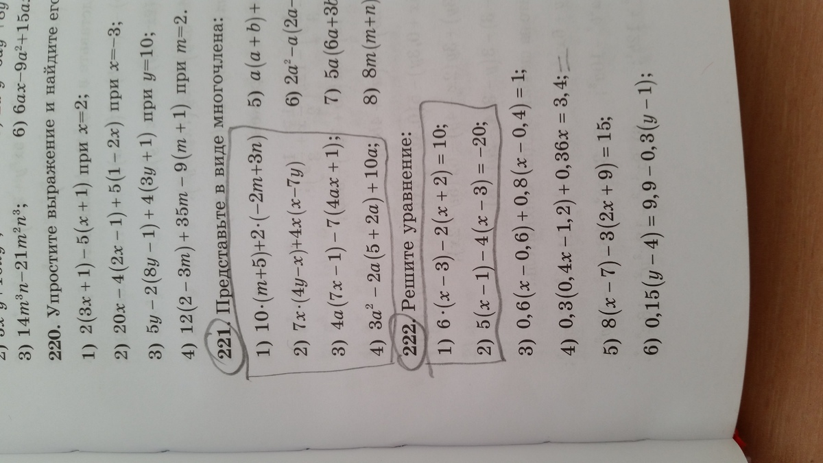 Помогите пожалуйста с 221( 1 столбик ) и 222(1, 2)