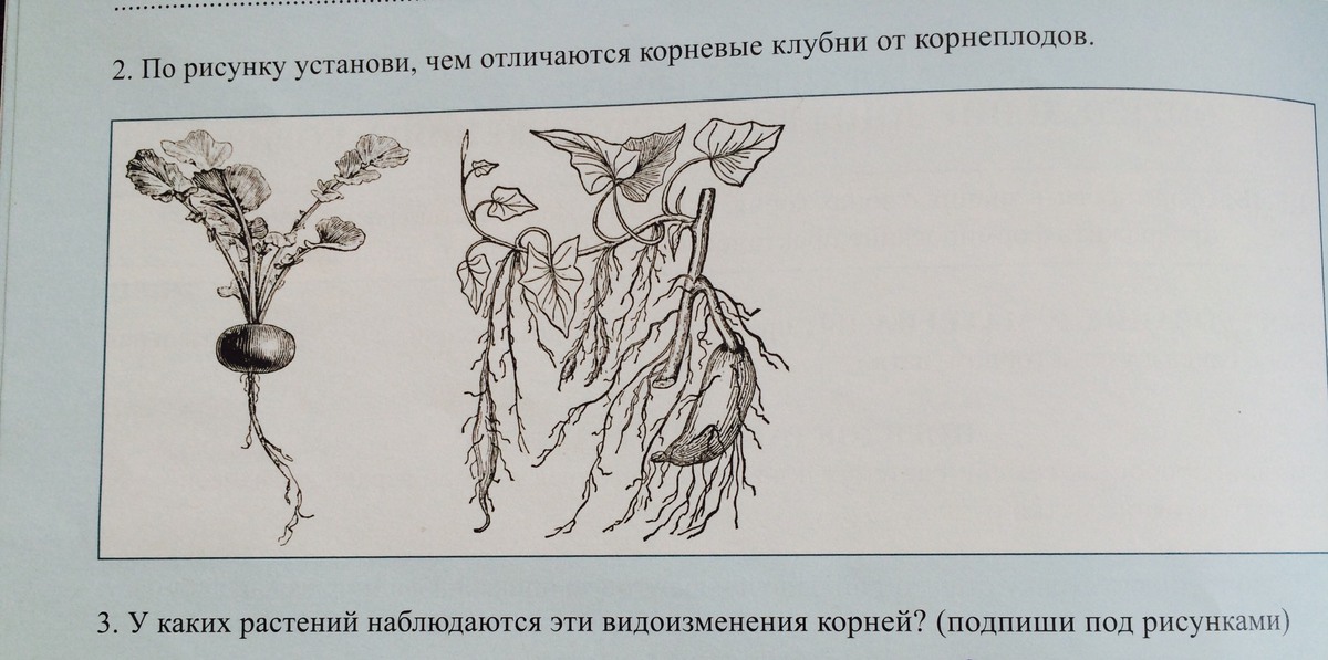 1.По рисунку установи, чем отличаются корневые клубни от корнеплодов